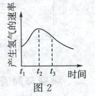 ② 实验中镁与稀盐酸反应的试管外壁发烫,结合图 2 分析,镁与稀盐酸反应产生氢气的速率随时间变化的原因是