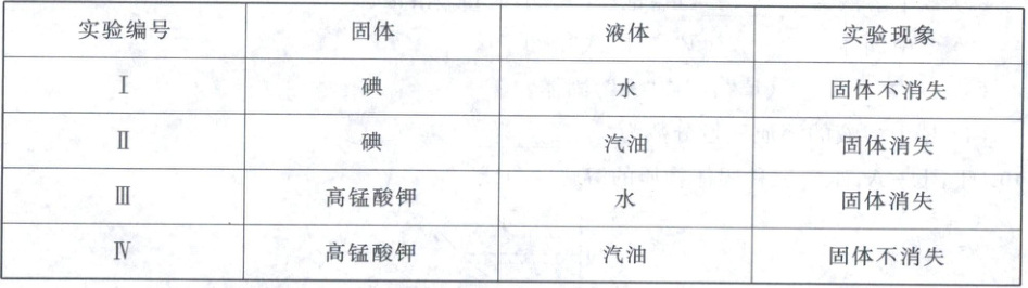 B.Ⅱ和Ⅳ对比得出的结论是:汽油不能溶解高锰酸钾,却能溶解碘