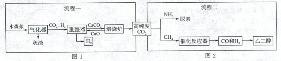 流程二:为充分利用流程一产生的高纯度二氧化碳,该实验室又设计了如流程二所示的两种工艺,分别制备尿素和乙二醇。