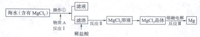 ① 为了使海水中含量较低的镁元素富集,工业生产中,通常向海水中加入的物质A是