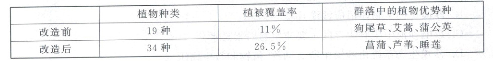 3. 某城市的一块荒地在城市发展过程中被改造成另一个相对稳定的生态系统,改造前后的一些变化见下表。据此所作出的相关判断中错误的是(