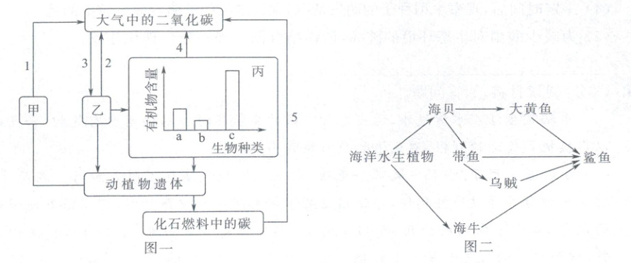 (3)图二要构成完整的生态系统,需要补充非生物部分和图一中的______(填“甲”“乙”或“丙”)。