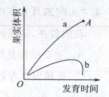 24. 下图是某兴趣小组在探究果实发育过程中的体积变化时,绘制的两朵黄瓜雌花生长发育期间体积的变化曲线。下列叙述与曲线相符的是(