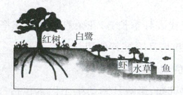 30. (8分)6月8日是世界海洋日,2020年的主题是“保护红树林,保护海洋生态”。红树林生长在热带、亚热带海岸淤泥滩涂上,是维持海岸生态平衡的重要生态系统。如图为红树林滩涂生态系统模式简图,请回答问题。