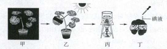 ,丁的实验现象是叶片见光部分变蓝,遮光部分不变蓝
