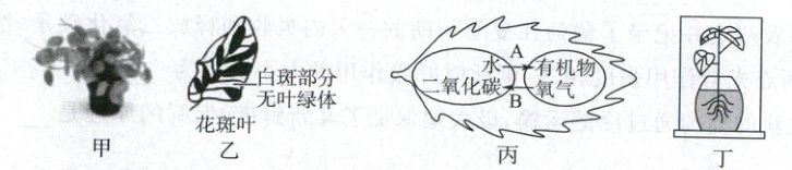 (3)图乙为一片长花斑的绿萝叶,叶片的白斑部分无叶绿体。用这种花斑叶重复“绿叶在光下制造有机物”的实验,则实验现象为