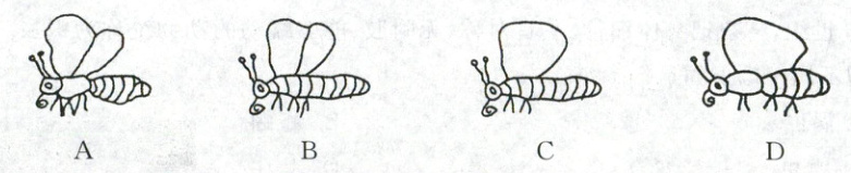 22. 下图是四位同学绘制的蝴蝶结构简图(侧面图),能正确反映蝴蝶昆虫特征的是(