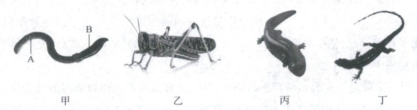 动物。(2)比较丙和丁两种动物,从外部形态上看差异不大,但却有着本质的区别。如丁的体表覆盖着