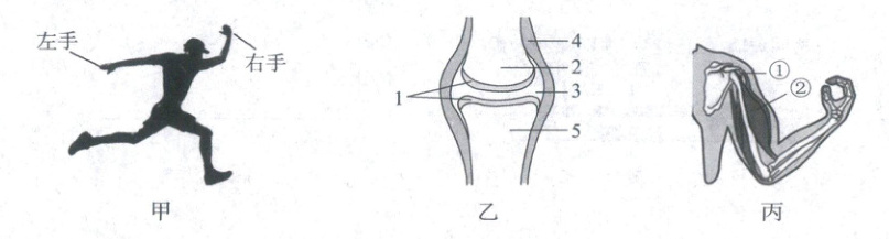 (3)关节在慢跑运动中起支点作用。图乙所示关节中,[2][5]表面覆盖着一层光滑的[