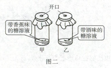 。夏天逐渐成熟和腐烂的香蕉常会招引来许多果蝇。有人认为是香蕉腐烂时的酒味招引来了果蝇,还有人认为是香蕉成熟时的香味招引来了果蝇。生物小组设计了上图图二所示的甲、乙两种诱捕果蝇的瓶子,他们将3只甲瓶和3只乙瓶随机均匀地放置在一个果蝇较多的地方。一段时间后他们将诱捕到的果蝇数目记录在下表中。回答下列问题。