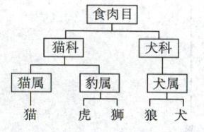 21. 下图是食肉目部分动物分类等级示意图,下列选项中亲缘关系最远的是(