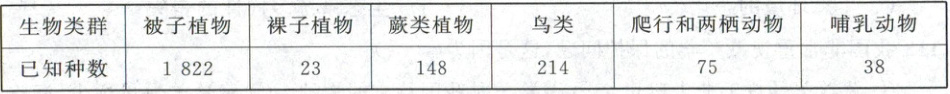 19. 下表是某自然保护区内的动植物情况。根据下表,下列分析错误的是(