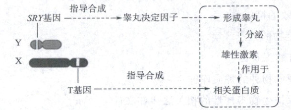 选项B:由图可知,SRY基因指导合成睾丸决定因子,形成睾丸,睾丸分泌雄性激素,雄性激素作用于相关组织器官,促使男性第二性征的形成,所以SRY基因与男性第二性征的形成有关,B选项正确。