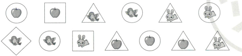 2. 按卡片的形状分一分,涂一涂,填一填。
