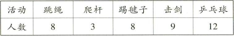 1. 乒乓球 12 2. 爬杆 3 3. 9 4. 跳绳 踢毽子 8 5. 20 6. 40