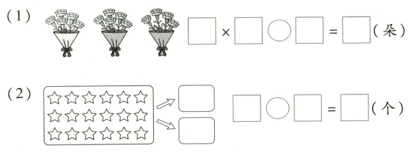 (1)5×3-1=14(或5×2+4=14) (2)18÷2=9