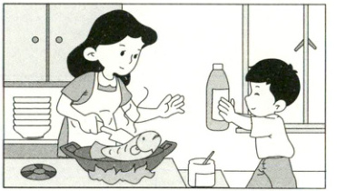 他看见桌子上放着一瓶酱油,就走过去拿起酱油瓶,对妈妈说:“妈妈,您需要酱油吗?我来帮您倒。”妈妈笑着说:“好呀,小明真是个懂事的好孩子!”小明小心地把酱油递给妈妈,妈妈接过酱油,高兴地摸了摸小明的头。