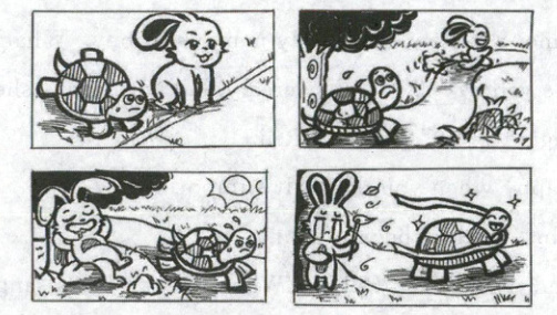 One day a tortoise decided to compete with the rabbit. All the animals went to watch the game. At first, the rabbit ran very fast and the tortoise walked very slowly. The rabbit thought it ran so fast that the tortoise wasn't able to catch up with it. So it fell asleep under a tree. However, the tortoise kept on walking without taking a break. Finally, the tortoise won the game and all the animals cheered for it. This story tells us we should always do everything carefully and shouldn't look down on others.