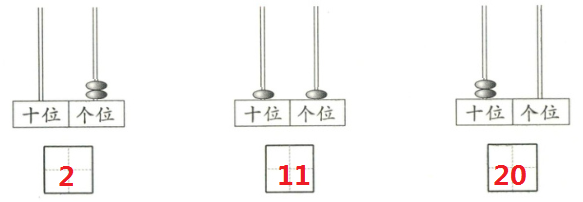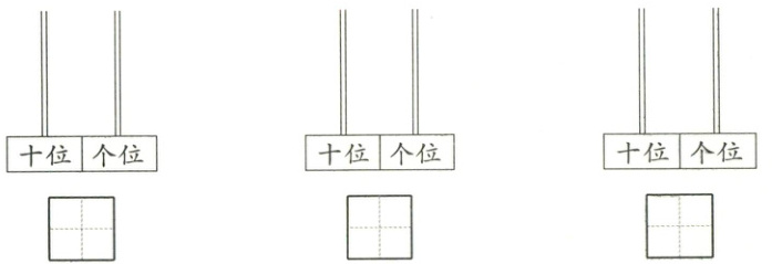 五、用两颗珠子放在计数器上可以表示不同的数,请你在下面的计数器上画出来,并写出对应的数。(6 分)