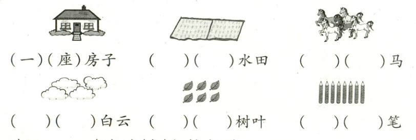 $\begin{array}{cccccc}一 & 两 & 四 & 五 & 六 & 八 \\匹 & 朵 & 块 & 片 & 座 & 支\end{array} $
