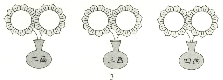 四、把笔画数相同的字写在同一个花瓶里。(6分)