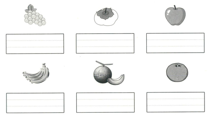1. 把下列水果名称写在四线格里。(6分)