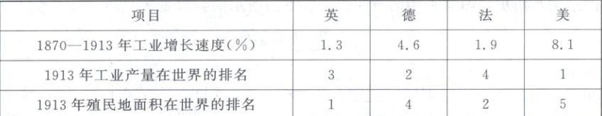 2. 下表是19世纪中后期至20世纪初列强实力对比变化表,这些变化最终导致了(