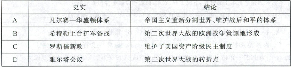20. 论从史出、史论结合是学习历史的重要方法。下列史实与结论不能成立的是(