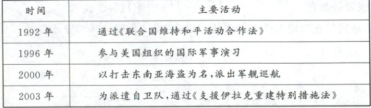 (3)问题:日本谋求政治大国地位,军事力量不断膨胀,试图突破战后和平宪法的限制。影响:引起亚洲邻国的高度警惕,不利于地区和平与稳定。