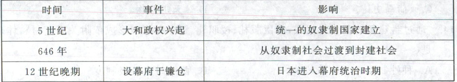 21. 下表是对古代日本发展历史的归纳,其中空白处对应的事件应是(
