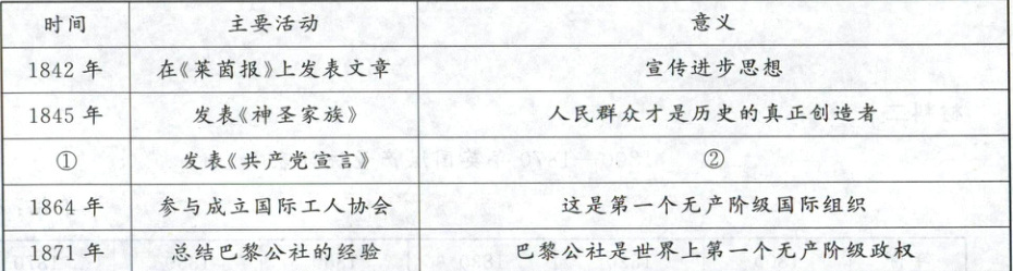 材料三 马克思号召“全世界无产者,联合起来”,为建立新社会而斗争。其主要活动见下表: