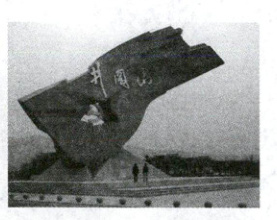 雄伟壮美的“井冈红旗”雕塑(右图)有三层寓意:一是,它像一块屹立不倒的巨石,象征中华人民共和国在井冈山奠基;二是,它像一团熊熊燃烧的火焰,寓意中国革命的星星之火从井冈山燃起,终成燎原之势;三是,它像一面高高飘扬的旗帜,耸立在四面环山的平畴之上,刺向苍穹,昭示中国革命从井冈山走向胜利。