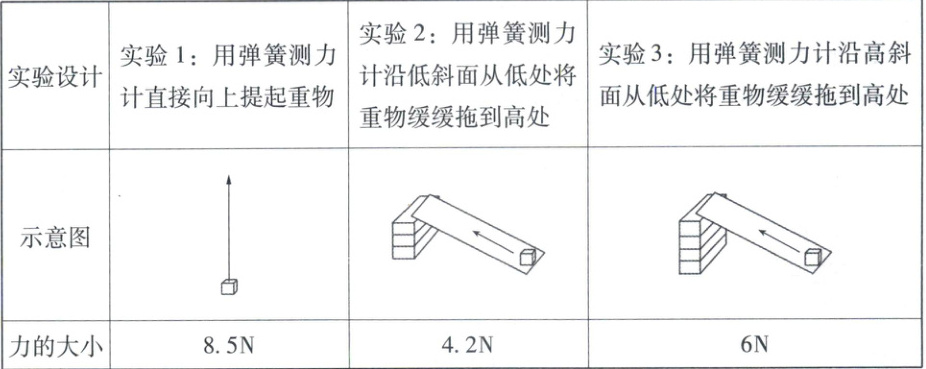 6. 任务1:将两个物体(比如木块和石块)由低处B沿斜面缓缓地拖到高处A,用弹簧测力计测量力的大小。
