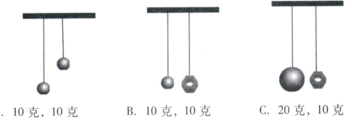 6. 下列各组摆中,能用于研究摆锤质量与摆动快慢是否有关的一组是(