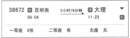 欢乐的假期到来了,圆圆一家决定去大理旅游,他们订了如下图所示的高铁票。