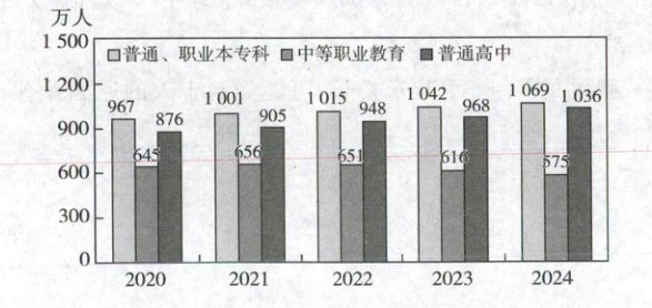 |2020 — 2024 年本专科、中等职业教育及普通高中招生人数|