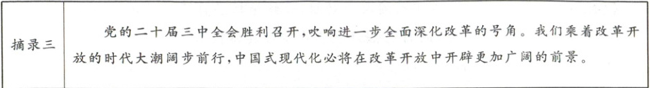 (3)摘录三体现出当代中国最鲜明的特色是什么?(2 分)