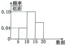 )(无图,推测为频率分布直方图,横坐标[5,10]对应频率/组距0.04,[10,15]对应0.10,[15,20]未知)