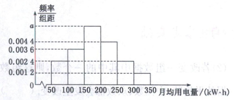 (2)由频率分布直方图,得被调查的用户中,月均用电量大于250kW·h的频率为(0.0024 + 0.0012)×50 = 0.18,所以被调查的用户中,月均用电量大于250kW·h的户数为100×0.18 = 18.