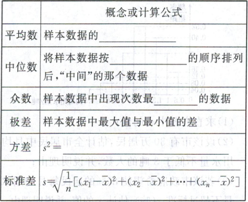 (1)一组数据中的平均数和中位数都不一定是原数据中的数. (