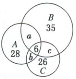 解析:由题意得{28+a+b+6=51,35+a+c+6=60,26+b+c+6=50},解得{a=9,b=8,c=10}.