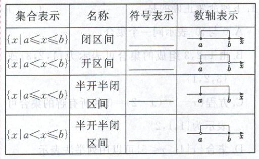 (1) 区间的概念($a,b$ 是两个实数,且 $a < b$)