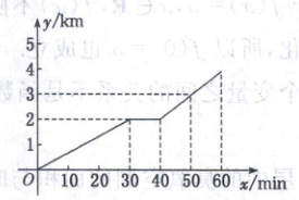 1. (多选)甲同学家到乙同学家的途中有一座公园,甲同学家到公园的距离与乙同学家到公园的距离都是 $ 2 $ km.如图所示表示甲同学从家出发到乙同学家经过的路程 $ y $(km)与时间 $ x $(min)的关系,下列结论正确的是(