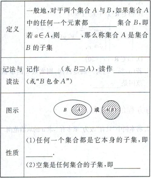 属于 $ a\in B $ $ A\subseteq B $ “A包含于B” $ A\subseteq A $ $\varnothing \subseteq A$