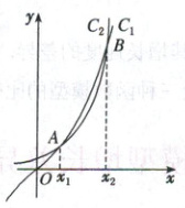 [例 2] 函数 $ f(x) = 2^x $ 和 $ g(x) = x^3 $ 的图象如图所示. 设两函数的图象交于点 $ A(x_1,y_1) $, $ B(x_2,y_2) $,且 $ x_1 < x_2 $.