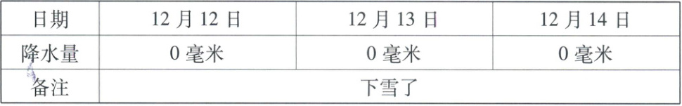 有问题。下雪属于降水,12 月 13 日下雪,降水量不应为 0 毫米,应将雪转化为等量的水的深度来记录降水量。