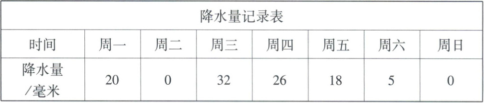 小明用自制的雨量器测量了一周的降水量,请根据记录表回答下列问题。