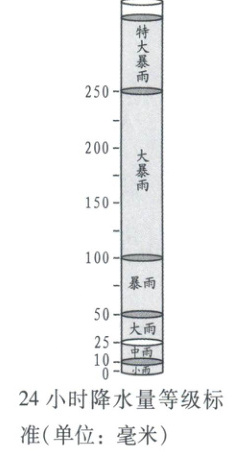 3. 根据右侧的 24 小时降水量等级标准,得知周一是