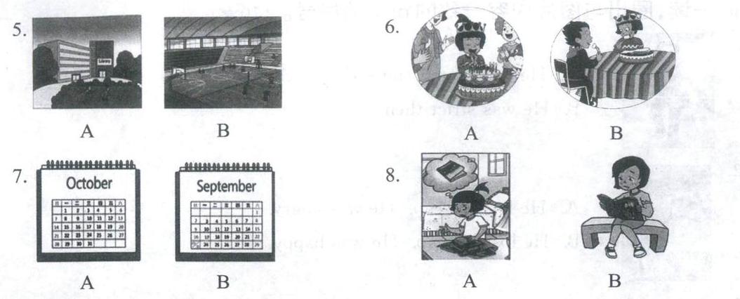 Ⅱ. 听句子,圈出与你所听到的内容相符的图片的序号。(16★)