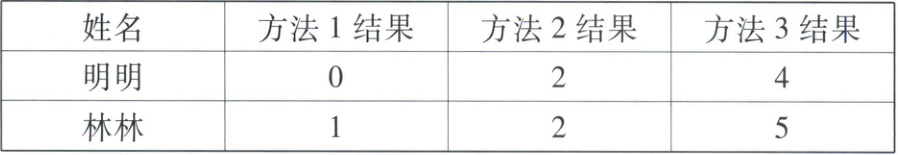 明明和林林用三种方法玩抓尺子游戏,每种方法做5次。请根据要求回答下列问题。